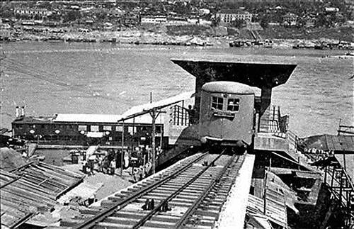 这条始建于1944年2月的缆车轨道由茅以升主持设计,于1945年5月16日正式通车。“当时,乘坐缆车上下行票价是不同的,下行只要1分钱,上行2分钱。1993年因修建长滨路,望龙门缆车站被拆掉。”渝中区文管所所长徐晓渝介绍,望龙门缆车使重庆先于国内其他地方有了这种独特的交通工具。